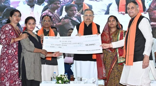 मुख्यमंत्री श्री विष्णु देव साय आज राजधानी रायपुर के मेडिकल कॉलेज स्थित अटल बिहारी वाजपेयी सभागार में छत्तीसगढ़ निःशक्तजन वित्त एवं विकास निगम के नवनियुक्त अध्यक्ष के पदभार ग्रहण एवं अभिनंदन समारोह में शामिल हुए। उन्होंने छत्तीसगढ़ निःशक्तजन वित्त एवं विकास निगम के नवनियुक्त अध्यक्ष श्री लोकेश कावड़िया को नए दायित्व के लिए बहुत-बहुत बधाई एवं शुभकामनाएं दीं। इस मौके पर मुख्यमंत्री श्री साय ने छत्तीसगढ़ निःशक्तजन वित्त एवं विकास निगम का नाम परिवर्तित कर छत्तीसगढ़ दिव्यांग जन वित्त एवं विकास निगम करने की घोषणा की। साथ ही मुख्य मंच से इस अवसर पर 15 दिव्यांग हितग्राहियों को ऋण, 11 दिव्यांग हितग्राहियों को ऋण अदायगी करने पर ब्याज सब्सिडी एवं श्रवण बाधित दिव्यांग को श्रवण यंत्र प्रदान किया गया।