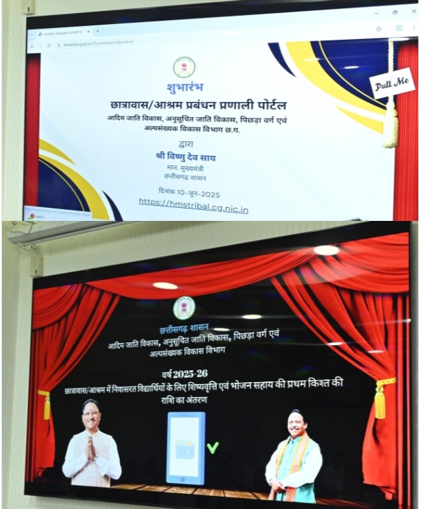 मुख्यमंत्री श्री विष्णु देव साय ने आज मंत्रालय महानदी भवन में आदिम जाति विकास, अनुसूचित जाति विकास, पिछड़ा वर्ग एवं अल्पसंख्यक विकास विभाग के कार्यों की उच्चस्तरीय समीक्षा की। इस अवसर पर उन्होंने छात्रावास-आश्रम प्रबंधन के लिए नवीन पोर्टल का शुभारंभ किया। साथ ही, आगामी शिक्षण सत्र 2025-26 में प्रदेश के आश्रम छात्रावासों के संचालन हेतु नई व्यवस्था के अंतर्गत शिष्यवृत्ति एवं भोजन सहायता की पहली किश्त (जुलाई से सितंबर) के रूप में 85 करोड़ रुपए का ऑनलाइन अंतरण भी किया।