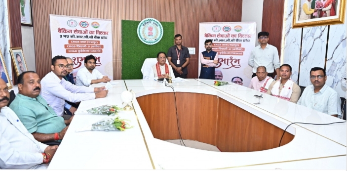 मुख्यमंत्री श्री साय ने जशपुर जिले के बगिया ग्राम में मुख्यमंत्री कैंप कार्यालय से वर्चुअल माध्यम से जशपुर विकासखंड के ग्राम आरा, पत्थलगांव विकासखंड के ग्राम कुडे़केला (घरजियाबथान) और बगीचा विकासखंड के ग्राम छिछली में छत्तीसगढ़ राज्य ग्रामीण बैंक की नई शाखाओं का लोकार्पण किया। इस अवसर पर उन्होंने छत्तीसगढ़ राज्य ग्रामीण बैंक के 12वें वार्षिक प्रतिवेदन का भी विमोचन किया।