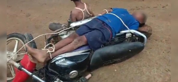 जानकारी के अनुसार, मामला जिले के चांदो थाना क्षेत्र इलाके में आने वाले खजुरियाडीह गांव का है, जहां दो युवक बाइक चोरी करने के उद्देश्य से गांव में गए हुए थ. लोगों ने बाइक चोरी करते हुए दोनों युवकों को पकड़ लिया और मौके पर ही बाइक से रस्सी के सहारे बांदा और बेदम पिटाई कर दी. ग्रामीणों ने कानून का सहारा ना लेकर खुद कानून को हाथ में लेकर किस तरह से बर्बरता की सारी हदें पर की हैं और दोनों एक की बेदम पिटाई की है.