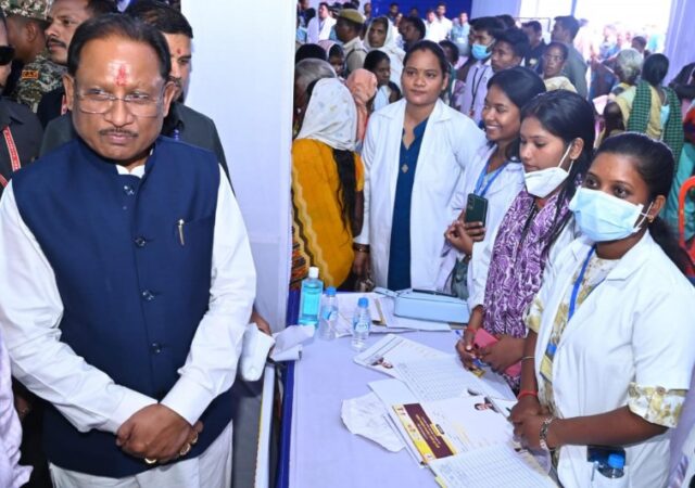 मुख्यमंत्री श्री साय ने विभिन्न विशेषज्ञ विभागों के काउंटरों का अवलोकन कर डॉक्टरों से चर्चा करते हुए उनके समर्पण व सेवा के लिए आभार व्यक्त किया।