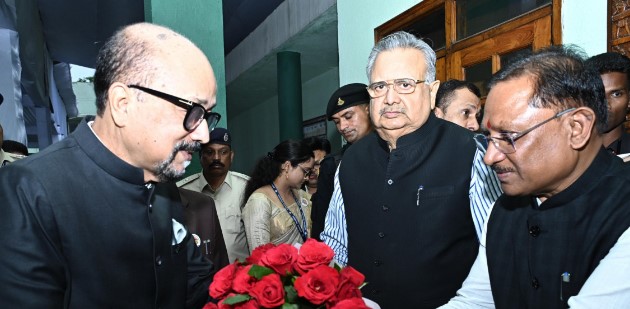 मुख्यमंत्री साय ने आज शाम यहां छत्तीसगढ़ विधानसभा परिसर में राज्यपाल श्री रमेन डेका का पुष्पगुच्छ देकर आत्मीय स्वागत किया।