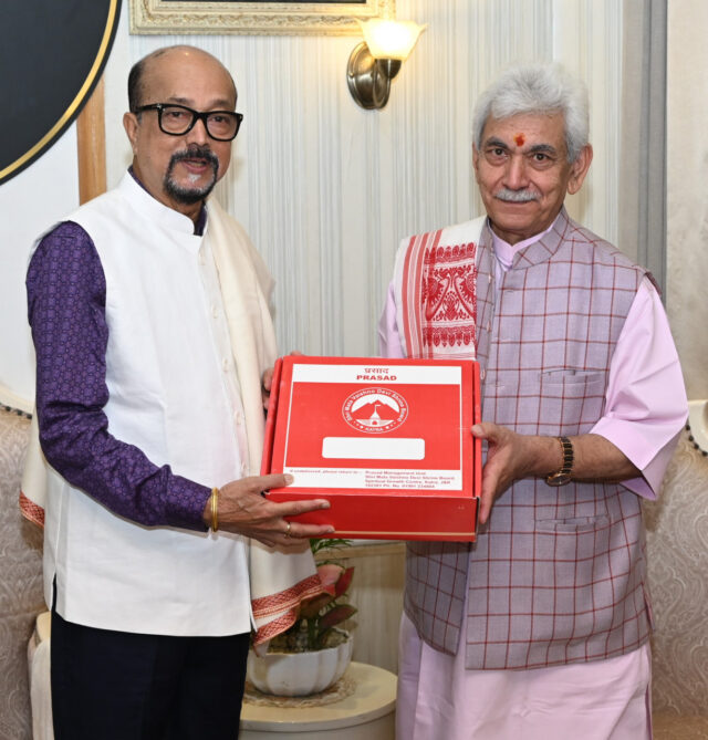 राज्यपाल श्री रमेन डेका से छत्तीसगढ़ प्रवास पर आए जम्मू-कश्मीर के उपराज्यपाल श्री मनोज सिन्हा ने राजभवन रायपुर में सौजन्य भेंट की। उप राज्यपाल श्री सिन्हा ने राज्यपाल श्री रमेन डेका को माता वैष्णो देवी का पवित्र प्रसाद भेंट किया। राज्यपाल श्री डेका ने उपराज्यपाल श्री सिन्हा का छत्तीसगढ़ में स्वागत करते हुए उन्हें बस्तर आर्ट का प्रतीक चिन्ह भेंट किया। इस यात्रा को अविस्मरणीय बनाने के लिए उपराज्यपाल ने राजभवन परिवार के साथ सामूहिक फोटो भी ली।