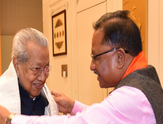 राज्यपाल श्री विश्वभूषण हरिचंदन से आज राजभवन में नामित (Designated) मुख्यमंत्री श्री विष्णु देव साय ने सौजन्य भेंट की। भेंट के दौरान शपथ ग्रहण की तैयारियों एवं प्रदेश हित से संबंधित विषयों पर चर्चा की गई।