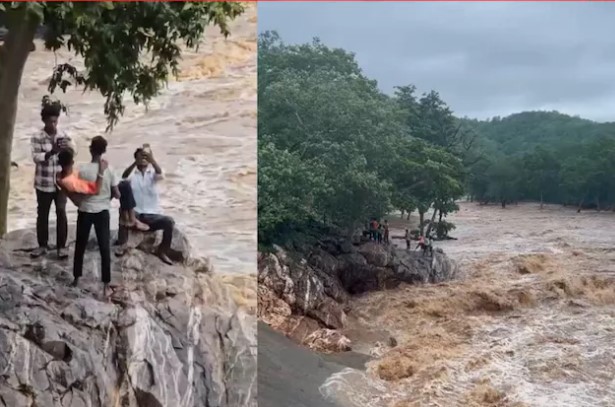 छत्तीसगढ़ के कई हिस्सों में मूसलधार बारिश हो रही है. इसकी वजह से कई नदियां उफान पर हैं. बांधों से भारी मात्रा में पानी छोड़ा जा रहा है. इस बीच खैरागढ़ जिले से एक खतरनाक और चौंकाने वाला वीडियो सामने आया है. वायरल हो रहे इस वीडियो में 5 युवक तेज बहाव वाले प्रधानपाठ बैराज की एक चट्टान पर खतरनाक तरीके से खड़े होकर स्टंट करते नजर आ रहे है. ये सभी युवक मोबाइल कैमरों के सामने फोटो और वीडियो बनाते नजर आए. अब उनका ये वीडियो सोशल मीडिया पर तेजी से वायरल हो रहा है.