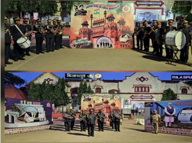 उपरोक्त विषयांकित के संबंध में अवगत कराना है कि 15 अगस्त-2025 (79वां स्वतंत्रता दिवस) की संध्या पर रेलवे सुरक्षा बल] दक्षिण पूर्व मध्य रेलवे] बिलासपुर के बैंड टीम द्वारा समय 17-30 बजे से 18-30 बजे तक बैंड डिस्प्ले किया जायगा] जिसमें रेलवे सुरक्षा बल के बैंड मास्टर श्री टी.आर. यादव के साथ अन्य बैंड सदस्य भाग ले रहें है] यह आयोजन ऐतिहासिक रेलवे स्टेशन बिलासपुर के vip गेट नं.-2 के सामने किया जा रहा है। इस बैंड डिस्प्ले में कई अलग-अलग देश भक्ति धुनों को बजाया जायेगा और इन धुनों के माध्यम से राष्ट्रभक्ति का संदsश दिया जायेगा । इस बैंड डिस्प्ले का मुख्य उद्देश्य आम नागरिकों, शासकीय कर्मचारियों,रेल कर्मियों] पुलिस बल सदस्यों एवं अन्य जनता में देश भक्ति] सामाजिक एकता और राष्ट्र गौरव की भावना को प्रोत्साहित करना है। रेलवे सुरक्षा बल] दक्षिण पूर्व मध्य रेलवे आम जनो से अपील करती है] कि इस स्वतंत्रता दिवस की संध्या पर बिलासपुर रेलवे स्टेशन vip गेट नं.- 2 में उपस्थित होकर बैंड डिस्प्ले का आनंद उठायें ।