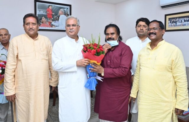 मुख्यमंत्री श्री भूपेश बघेल से आज यहां उनके निवास कार्यालय में छत्तीसगढ़ राज्य औद्योगिक विकास निगम के नवनियुक्त अध्यक्ष श्री नंद कुमार साय ने सौजन्य मुलाकात की। मुख्यमंत्री श्री बघेल ने श्री साय को छत्तीसगढ़ राज्य औद्योगिक विकास निगम के अध्यक्ष पद पर नियुक्ति व कैबिनेट मंत्री का दर्जा दिए जाने पर हार्दिक बधाई देते हुए उन्हें नवीन दायित्व के सफलतापूर्वक निर्वहन के लिए शुभकामनाएं दीं। इस अवसर पर खाद्य मंत्री श्री अमरजीत भगत, राज्य खनिज विकास निगम के अध्यक्ष श्री गिरीश देवांगन, रायपुर नगर निगम के महापौर श्री एजाज ढेबर भी उपस्थित थे।