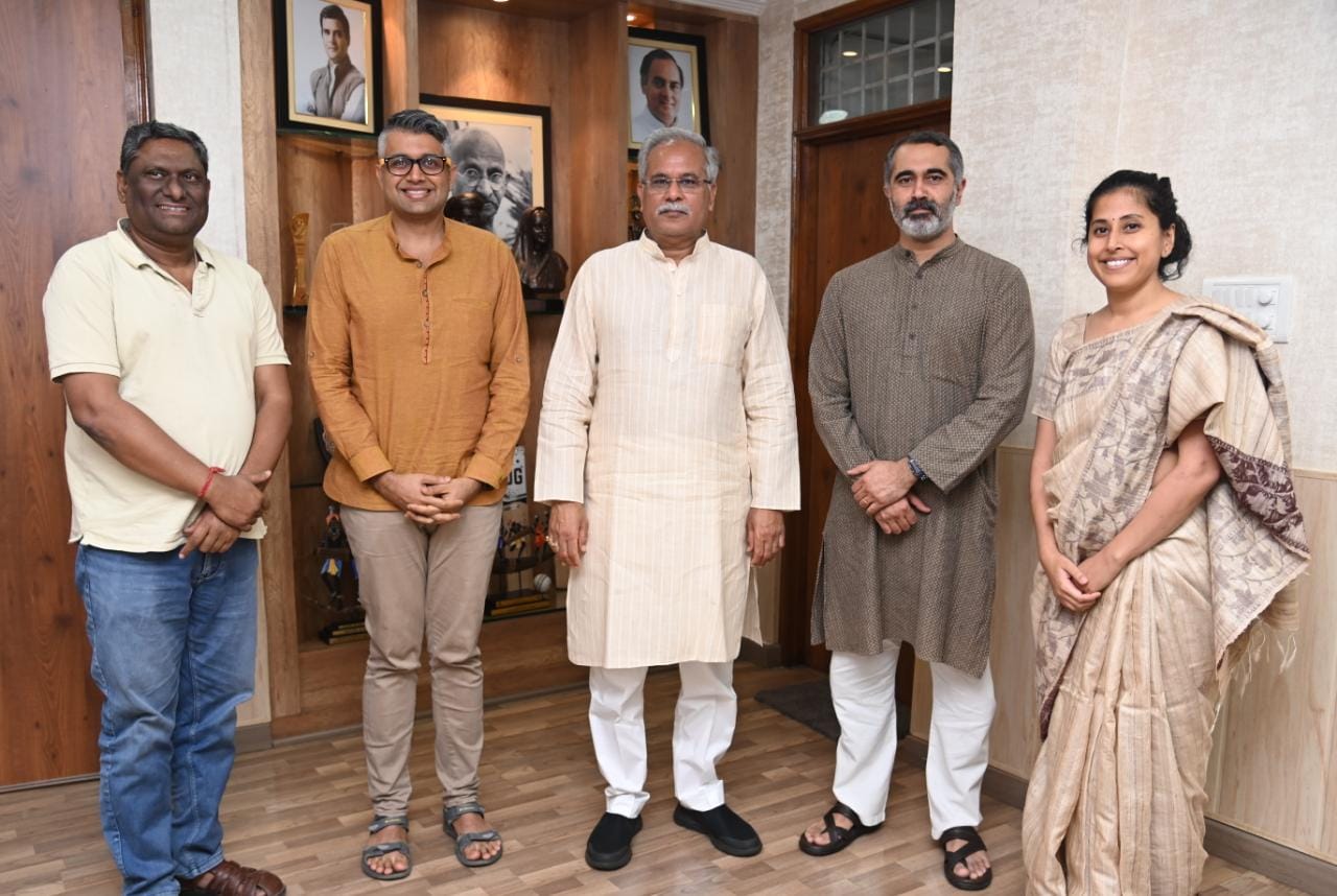 मुख्यमंत्री ने उन्हें छत्तीसगढ़ में ग्रामीण अर्थव्यवस्था को सुदृढ़ करने के लिए प्रदेश में लागू की गई सुराजी गांव योजना के तहत नरवा, गरवा, घुरवा, बाड़ी योजना, गोधन न्याय योजना, गोबर से वर्मी कंपोस्ट के उत्पादन, गौठानों को रूरल इंडस्ट्रियल पार्क के रूप में विकसित करने की पहल और इन योजनाओं से छत्तीसगढ़ में पर्यावरण संरक्षण के साथ लोगों को मिलने वाले लाभ की विस्तृत जानकारी दी। मुख्यमंत्री ने उन्हें बताया कि वर्मी कंपोस्ट उत्पादन के साथ-साथ किसानों द्वारा इसके स्वस्फूर्त बढ़ते उपयोग के चलते छत्तीसगढ़ जैविक खेती की दिशा में तेजी से आगे बढ़ रहा है। गोबर से बिजली उत्पादन और पेंट बनाने की शुरुआत भी की जा रही है। गौठनों में संचालित आर्थिक गतिविधियों से ग्रामीणों और महिलाओं को रोजगार और आय के नए अवसर मिले हैं।